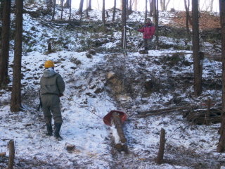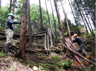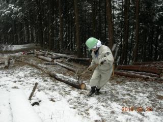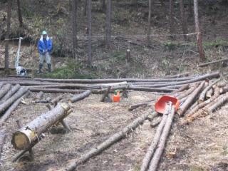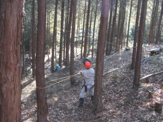 ワイヤーで山出し