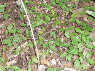 | ドングリ坊やが無くなって、動揺したおじさんでしたが、しばらくして落ち着き、冷静に考えてみました。木が引きちぎられてもドングリ坊やは、転がり出た土の上で 生きているかもしれない。「そーだ、そーに違いない、あわてることはなかった」 と、そこでおじさんは期待に胸をふくらませて再び訪ねてみました。しかしそれは期待で終わってしまいました。ドングリのかけらすら見つかりません。沢山の人がドングリ坊やを見守っていたのに、大変残念です、心が痛みます。 そして思いました「これでこの物語は終わってしまう」「これが現実、自然とはそういうものだ」「メルヘンチックな事はよしなさい」と。 ヤレヤレ、トボトボとおじさんは重い足取りで帰り道をたどって行きました。下ばかり向いていたのでしょう、来るときには気付かなかった景色に出会いました。そこにはドングリ坊やが沢山ひしめき合っていたのです。 すこしホッとしました。 これでこの物語は終わりとします。反省を込めてページを一新。「黒森のおもしろ」で、黒森山で見つけた不思議なもの、面白いものを紹介してゆきます。 |